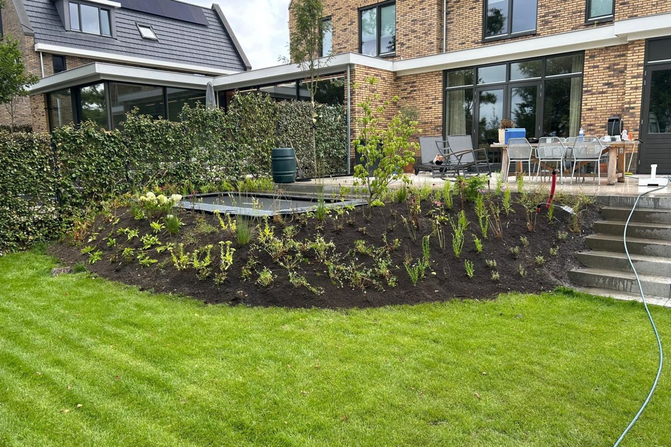 Naast particuliere tuinen verzorgen wij ook projecten voor bedrijven en schoolpleinen, waarbij we extra aandacht besteden aan veiligheid, duurzaamheid en een nette uitvoering. Of het nu gaat om functionele oplossingen, een representatieve uitstraling of het creëren van een fijne en sfeervolle buitenruimte: wij zorgen ervoor dat elk onderdeel perfect aansluit op uw wensen en de omgeving.